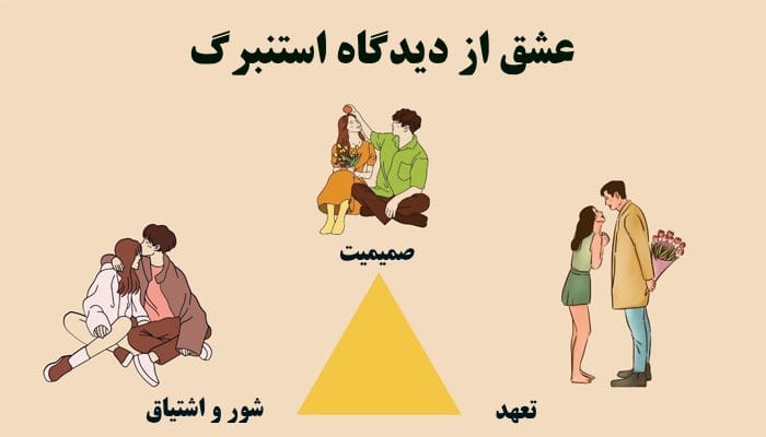 According to Stenberg, love as a complex and multidimensional phenomenon has three fundamental elements: passion, intimacy, and commitment. The stronger the love triangle of people, the more likely the relationship will continue and be stable. Healthy, steady love, with gentle warmth, can be far more productive than intense, fleeting romantic feelings. Consistency and stability in human relationships are key factors in emotional growth and development, while severe and fleeting emotional experiences may only provide a moment of happiness. Based on the combination of these three elements of passion, intimacy, and commitment, Stenberg has identified seven types of love, which we will examine below:
